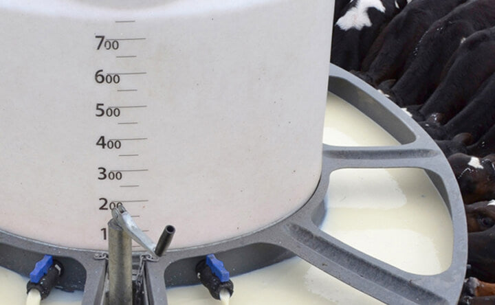Large 50mm taps are fitted between the tank and manifolds for fast flow of milk. The opaque tank acts as a gigantic sight glass so you can check the levels from a distance. Drive into your calves, open the taps, check the level of milk against the large gradients and you’re done!