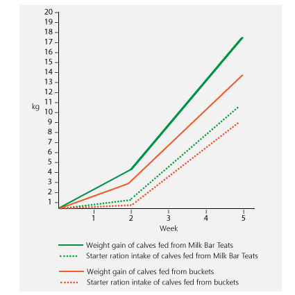 Calves feed from Milk Bar Teats consumed more starter ration and were considerably heavier at the conclusion of the trial.