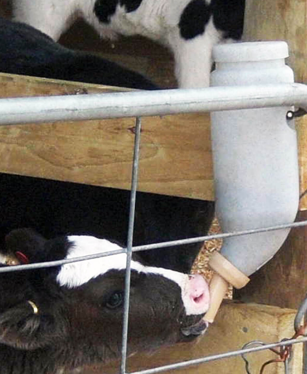 Hang the bottle in the corner of the pen with the nipple approximately 85cm from ground, the calf should reach up slightly.