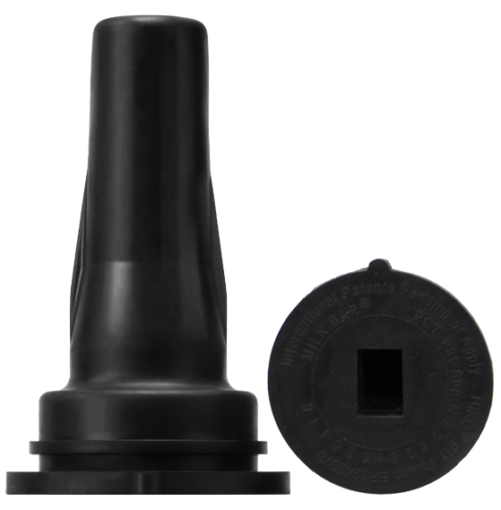 For this special teat we collaborated with Hiko and used the hygienic and easy to use 1 Click system to connect the teat to a standard hutch bucket. Combining the 1 Click with the controlled flow Milk Bar™ Teat, gives the perfect solution for farms using hutch buckets!