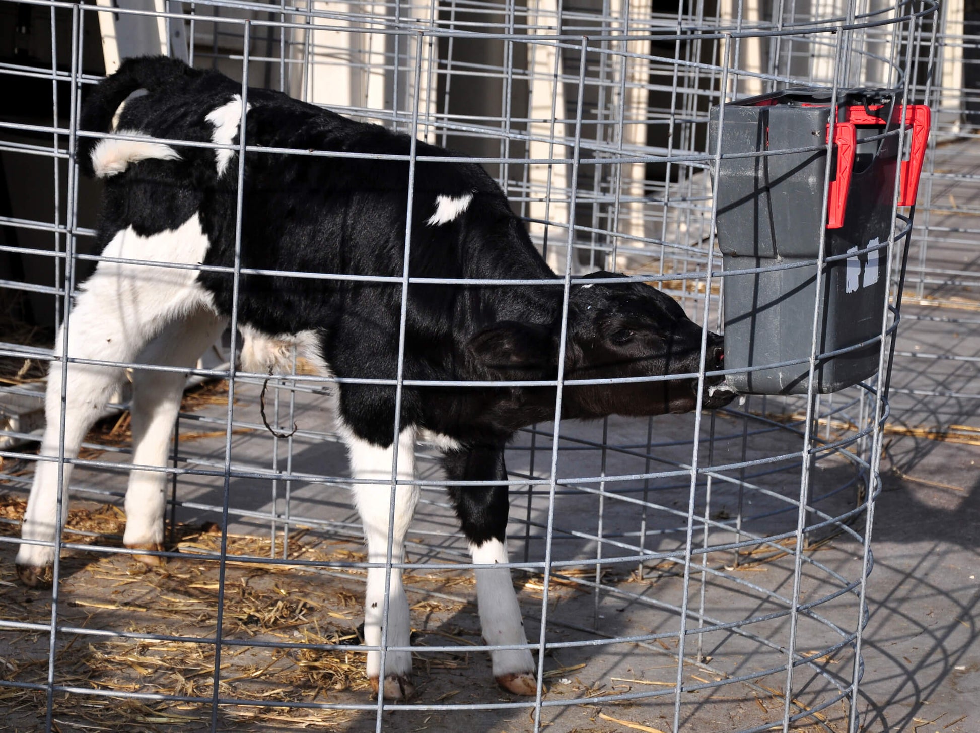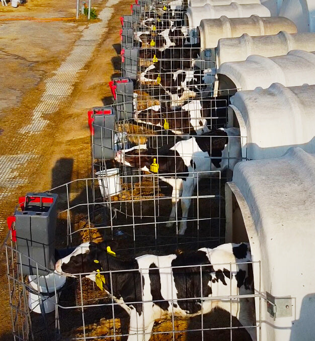 To give your calves the best drinking position, hang the feeder on a rail around