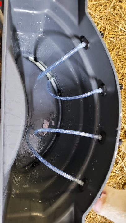 After 2 - 3 weeks, you may notice calves are drinking a little quicker, or that the teats are maybe starting to drip a little. When this happens, transition the teats to the top holes and insert the tubes.