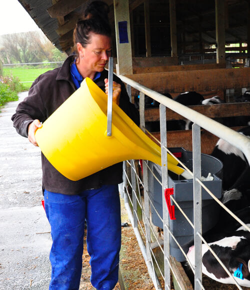 The specifically designed Rail Pail has a curved spout that slides through the rails or gate and sits on the back of the feeder so you are not taking the full weight of the milk on your elbows and back. There is a finger grip at the base, so while the spout is taking the weight, you can lift the base of the bucket for easy filling. Marked increments give you a good idea of volume. Available in three cheerful colours, Green: 950100 Yellow: 950101 Pink: 950102